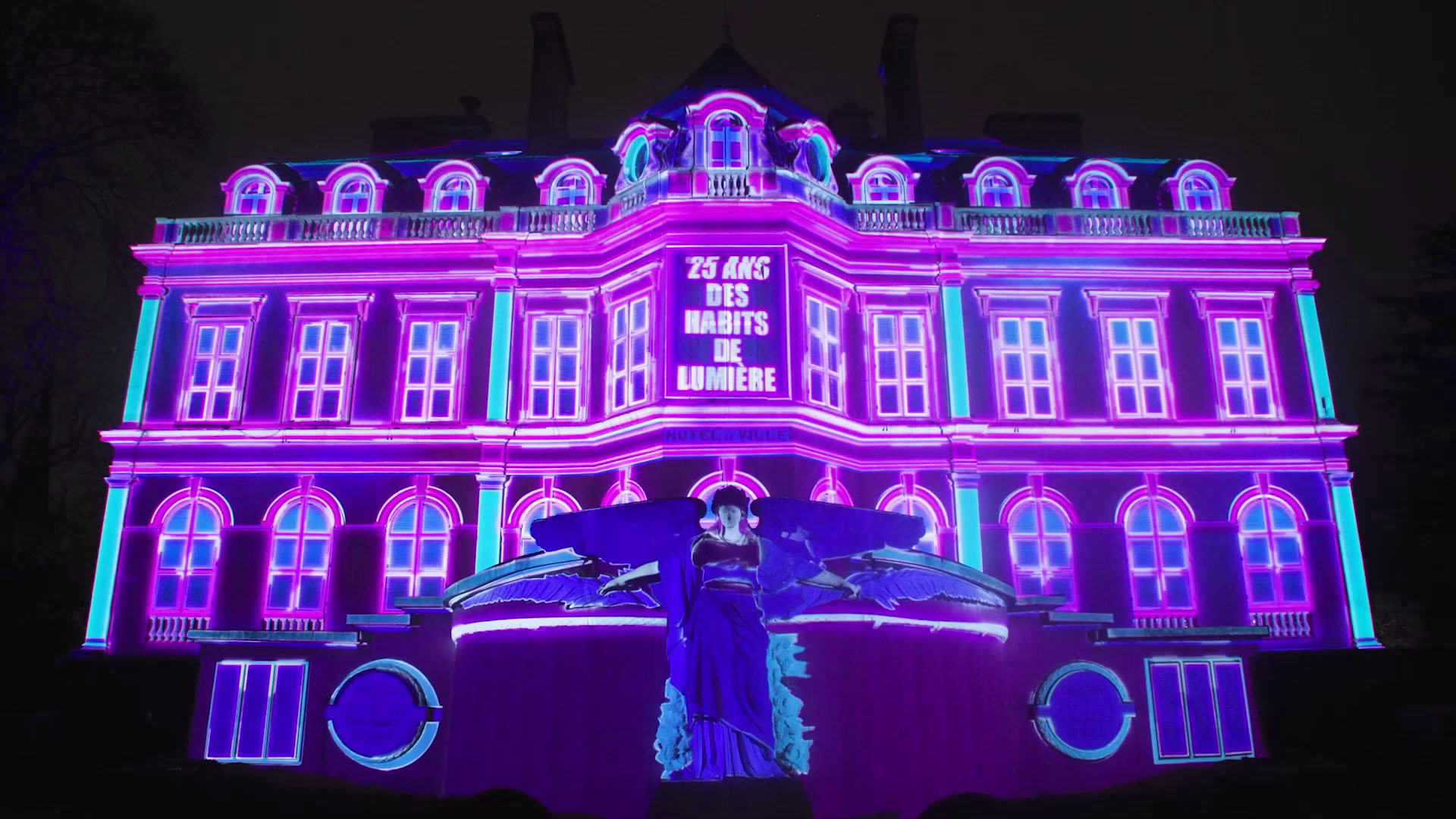 Les 12 et 13 décembre 2025, à l’occasion des 25 ans de la manifestation Habits de Lumière à Épernay, capitale du champagne, Artcom Diffusion a proposé un vidéo mapping exceptionnel illuminant la façade de l’Hôtel de Ville.