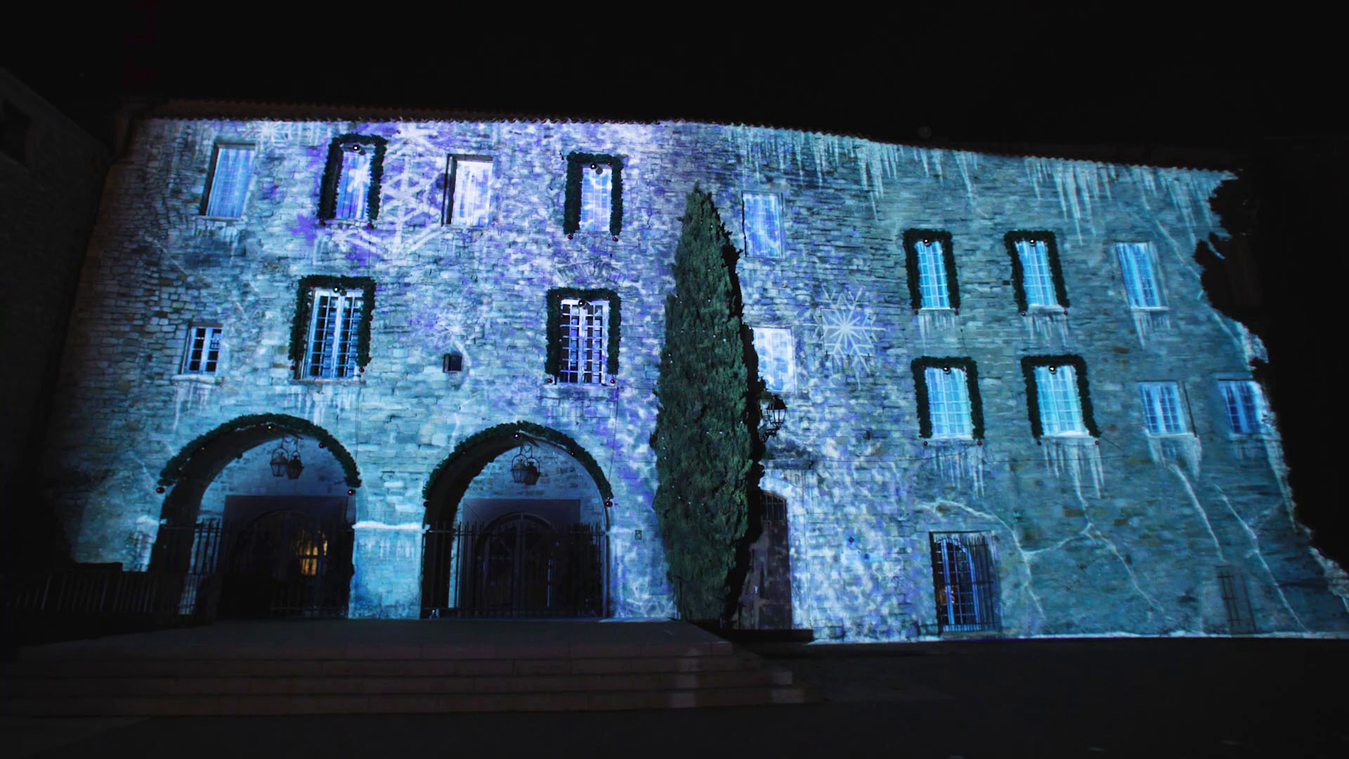 En décembre 2025, Artcom Diffusion a déployé un dispositif technique innovant, alliant esthétique et performance, pour sublimer la façade de la Mairie du Castellet au fil des saisons et des thématiques..